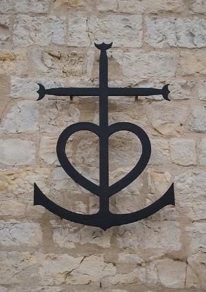 | Cruz de Camargue, que significa a fé ancorada no coração. |